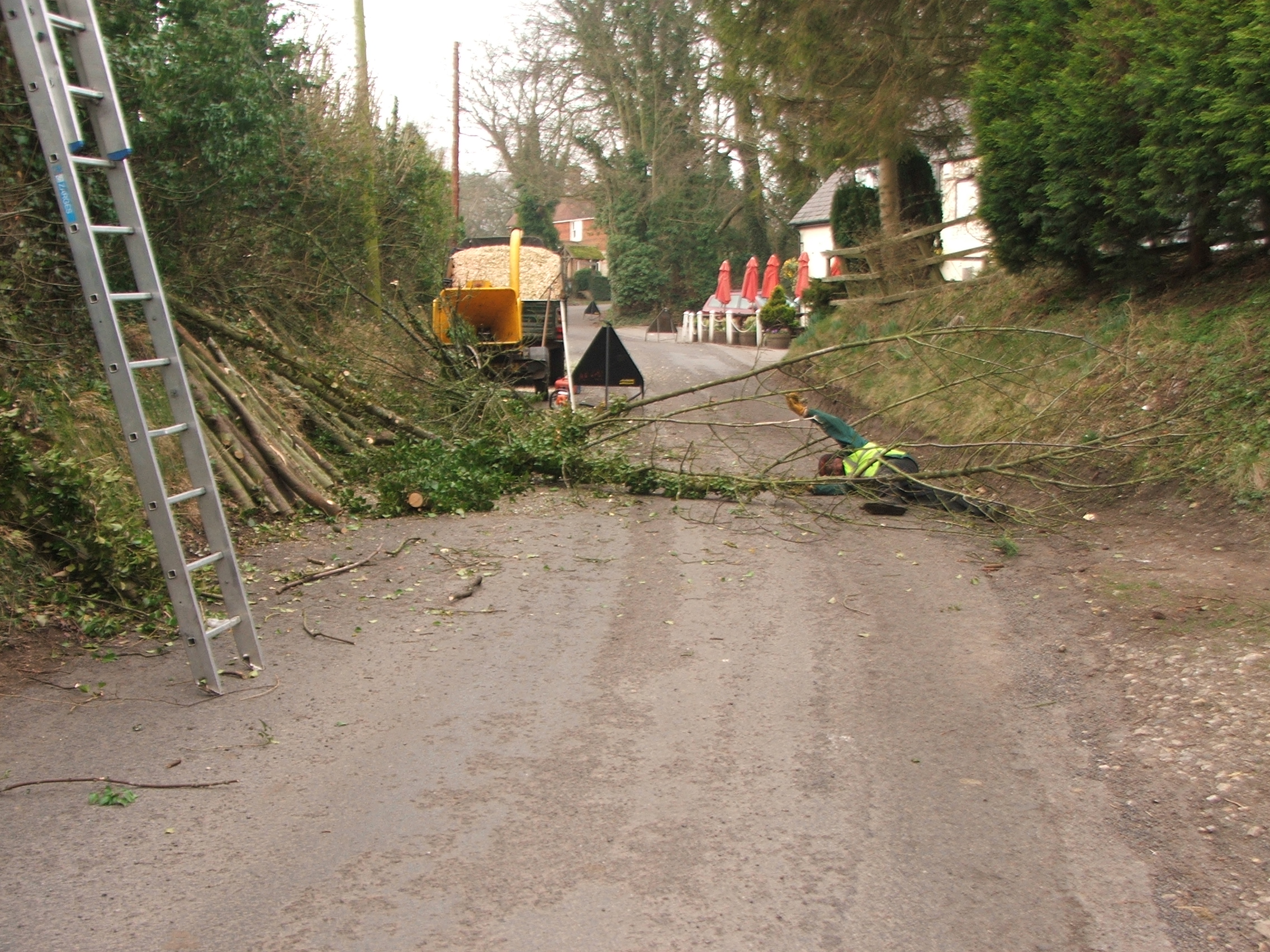 Work under the tree is as equally dangerous as up the tree. Thankfully this was just a dress rehearsal. Bentworth, near Alton.