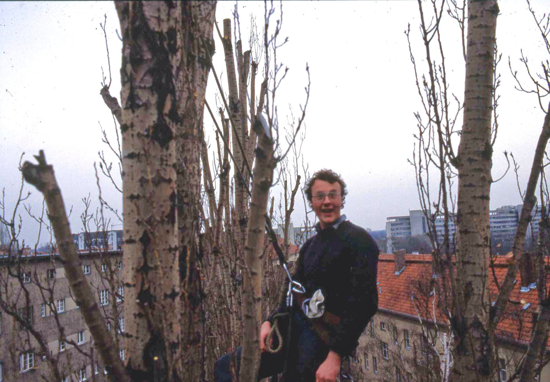 Reducing Lombardy Poplars Spandau, West Berlin, many years ago. We used 3ply rope in those days... terrible tangles. Modern multiplait rope is a doddle to use. We are unfortunately not allowed to splice climbing ropes anymore.