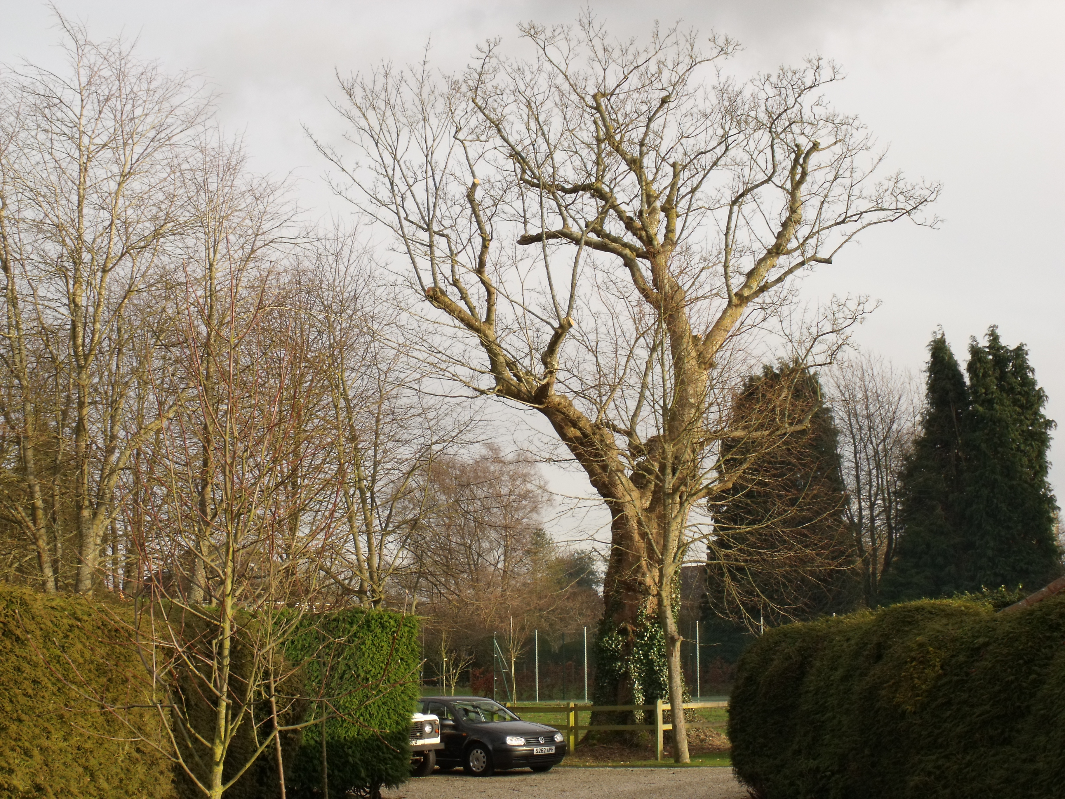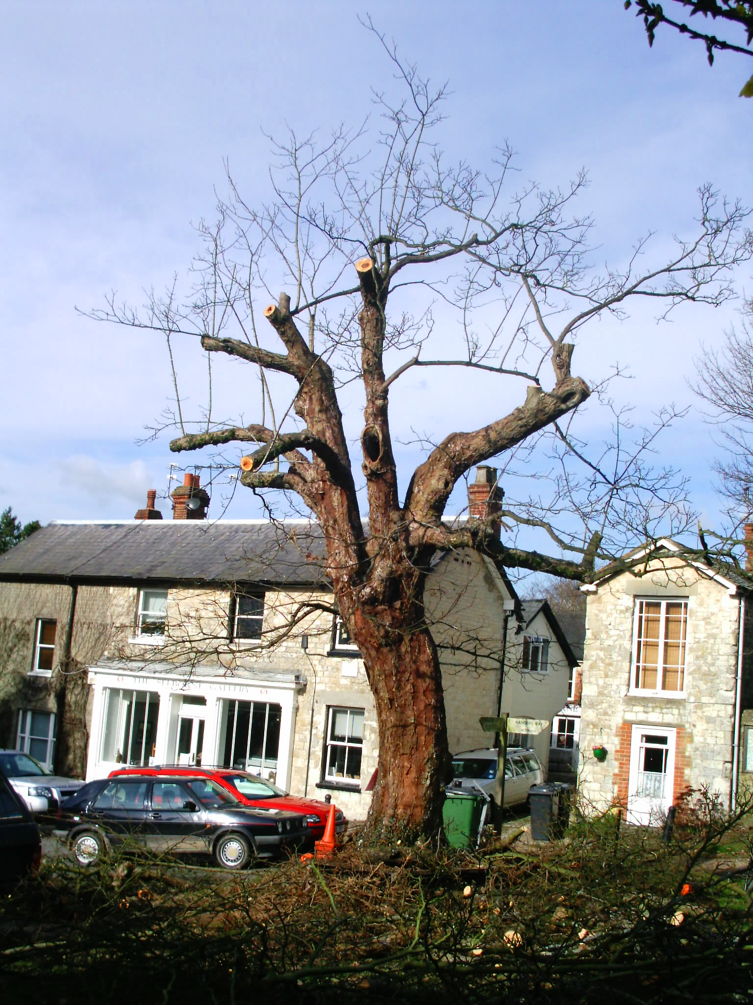 Very old hollow Sycamore has been reduced carefully to lower chance of crown failure. Binsted