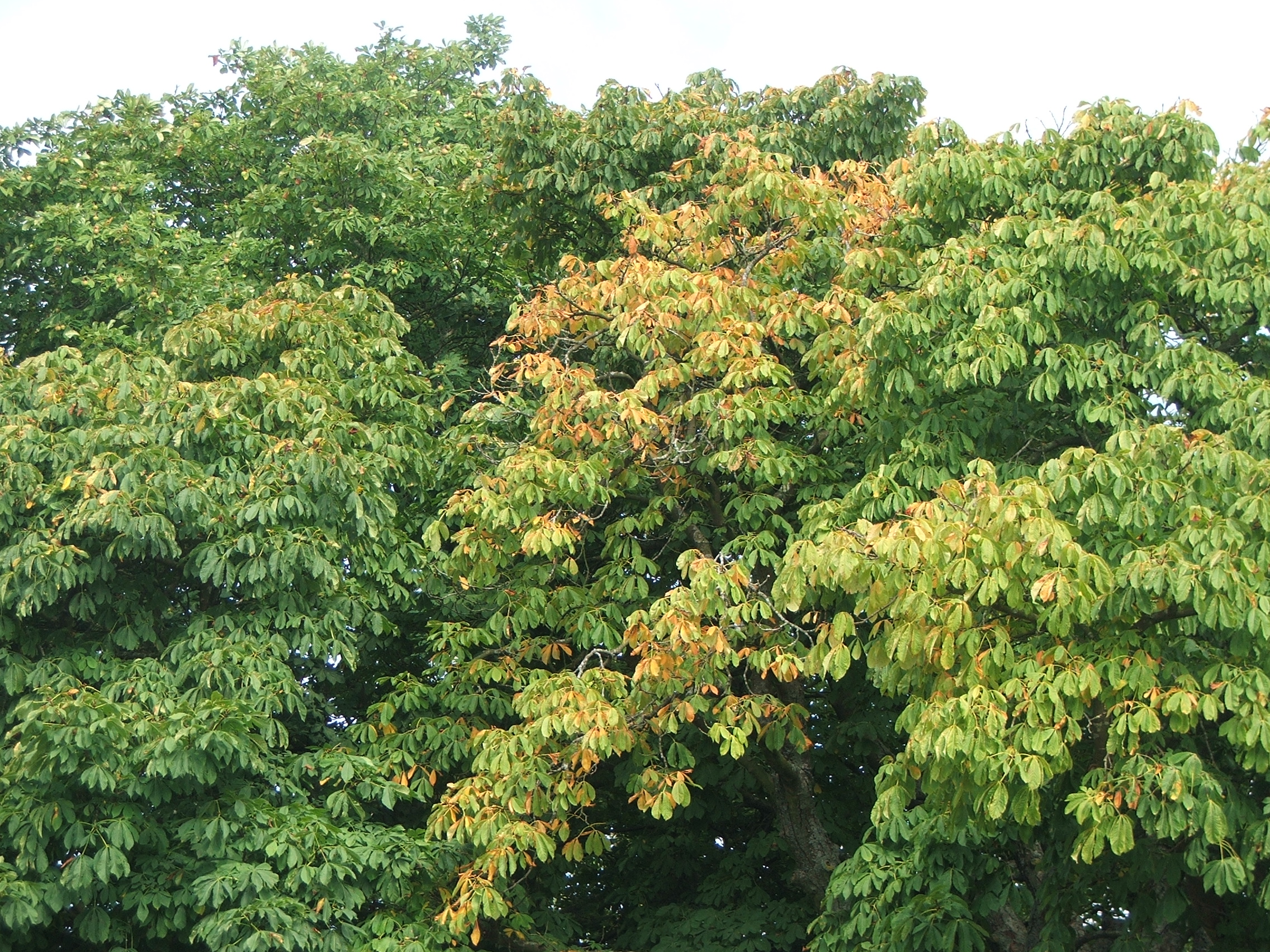 Early foliage dieback caused by Bleeding Canker of Horse Chestnut - Pseudomonas syringae aesculi. Ropley. http://www.forestry.gov.uk/fr/infd-6kybgv.