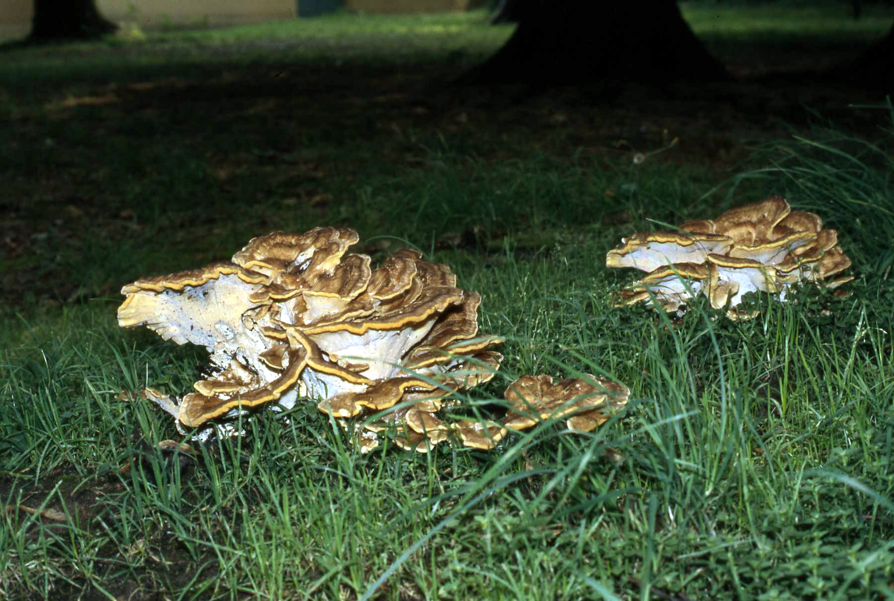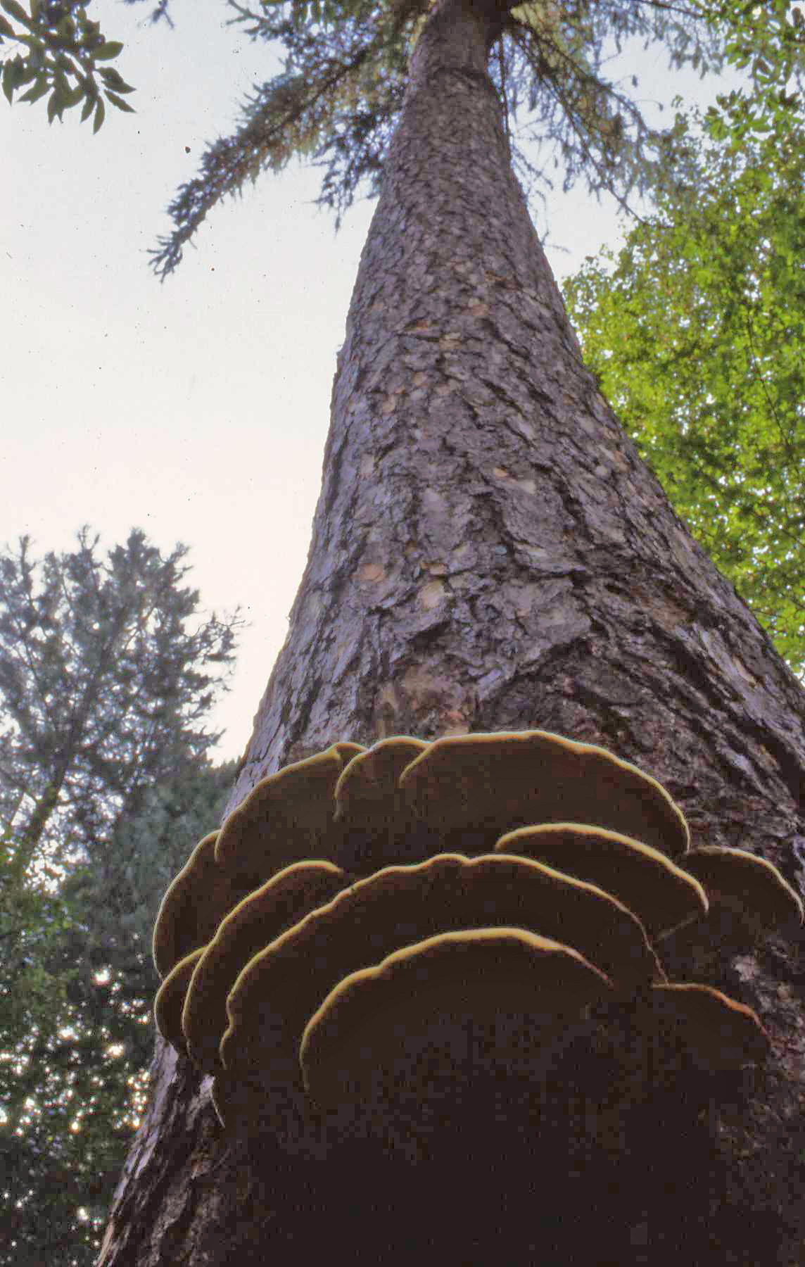 Phaeolus schweinitzii on larch. Causes basal decay. Serious worry amongst growers of timber.
