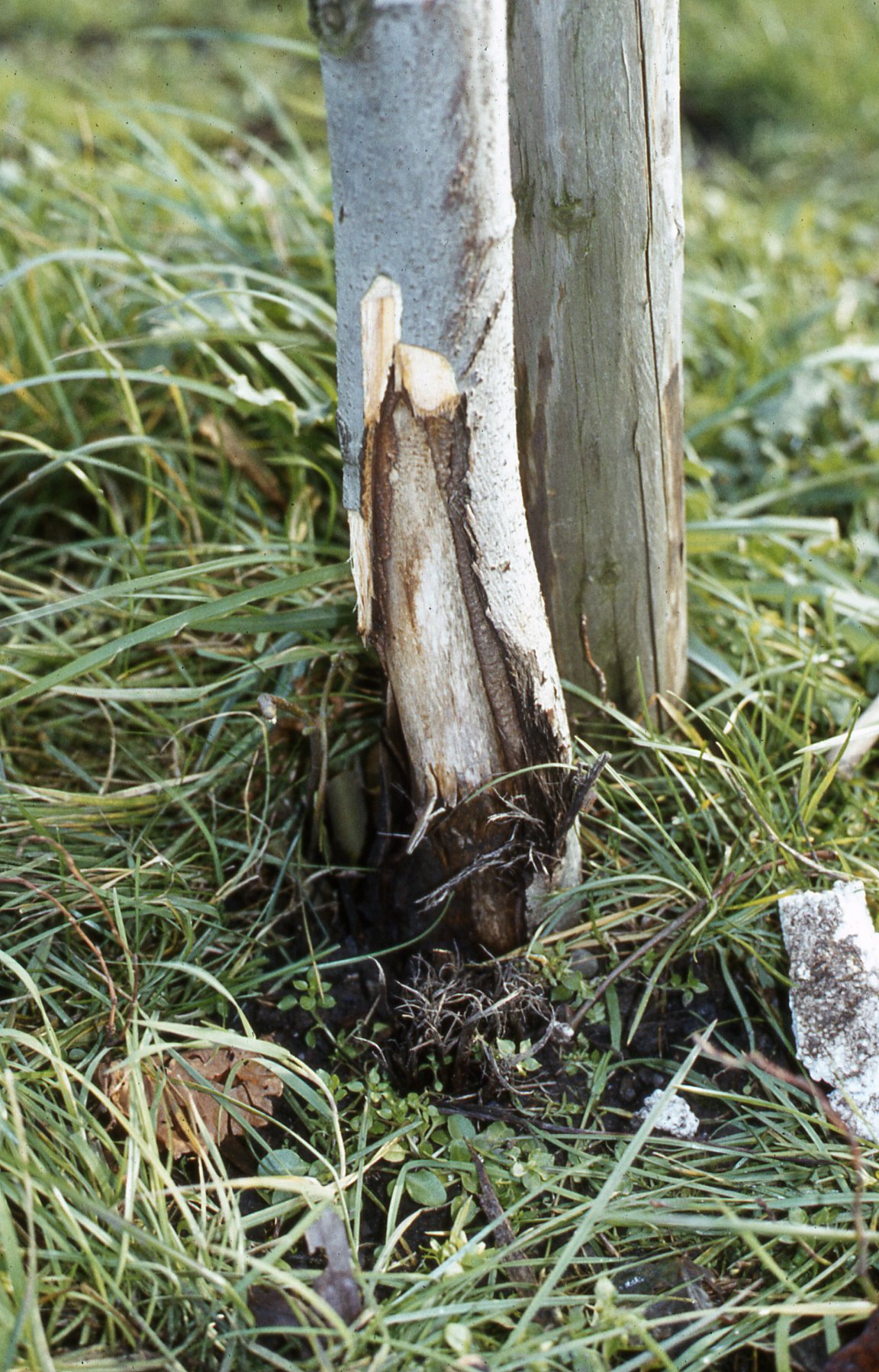 Mowers and strimmers v. young trees. Should be kept apart. A good layer of mulch would be a good idea too!