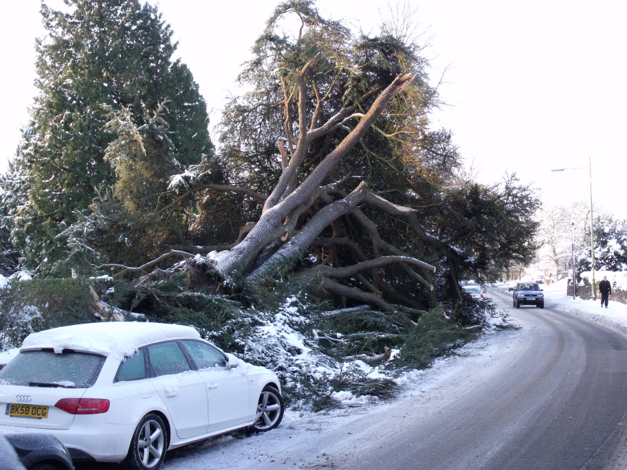 Heavy snow will break branches and can even bring down whole trees. January 2010.